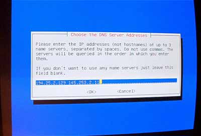 Specify the DNS servers the system should use (e.g. 193.174.32.18 and 145.253.2.11).