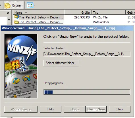 After the download has finished, unzip it with your favourite unzip tool, e.g. WinZip on Windows: