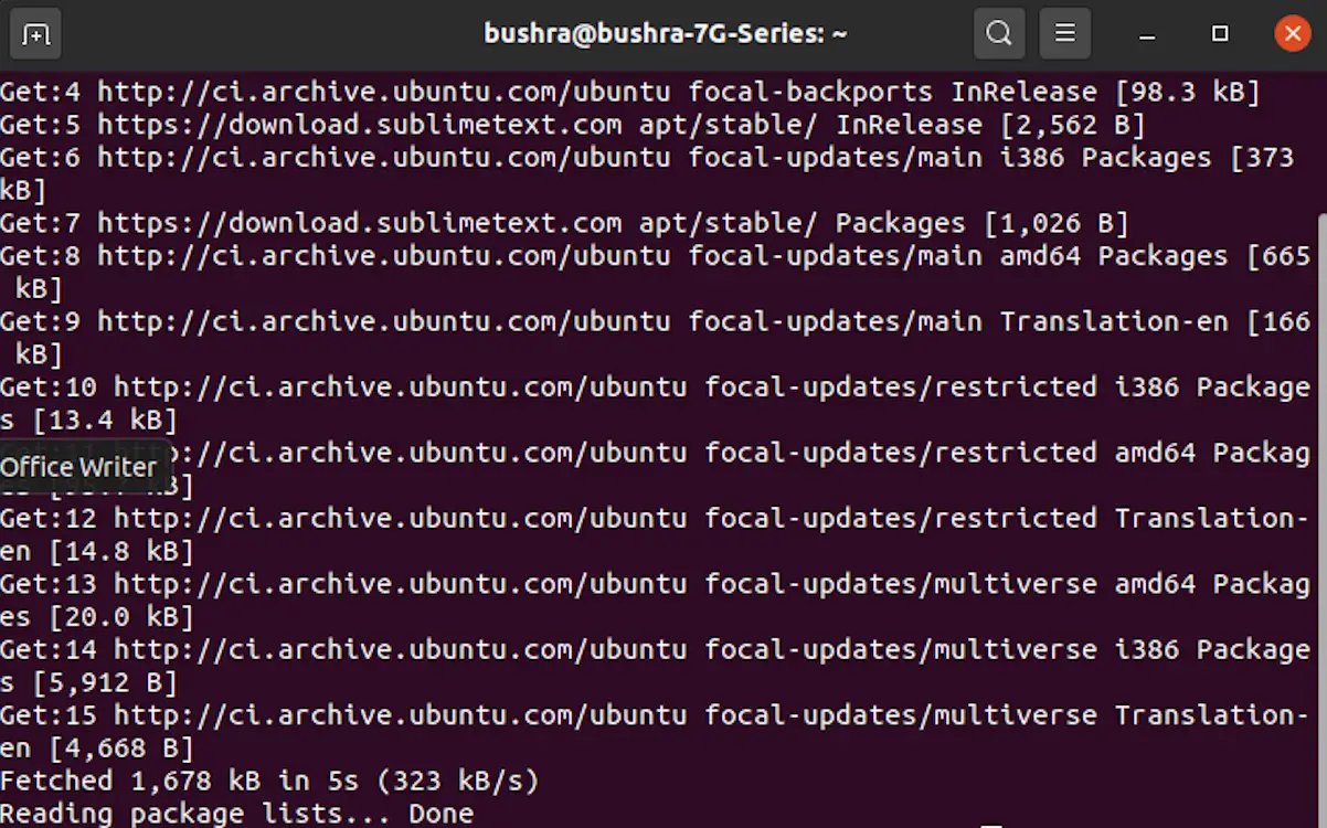 Once the apt repository is installed, check for the updates in your system. To install the sublime-text editor and for checking the updates use the command: