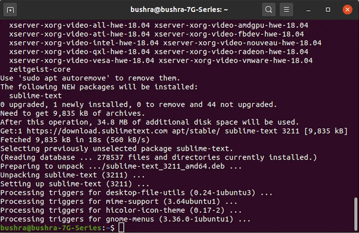 Note: Users can also use Snap packages for installing sublime text editor by using the command snap install sublime-text. All snap packages are maintained by the Snap crafters community and can be used to install different software when needed.
