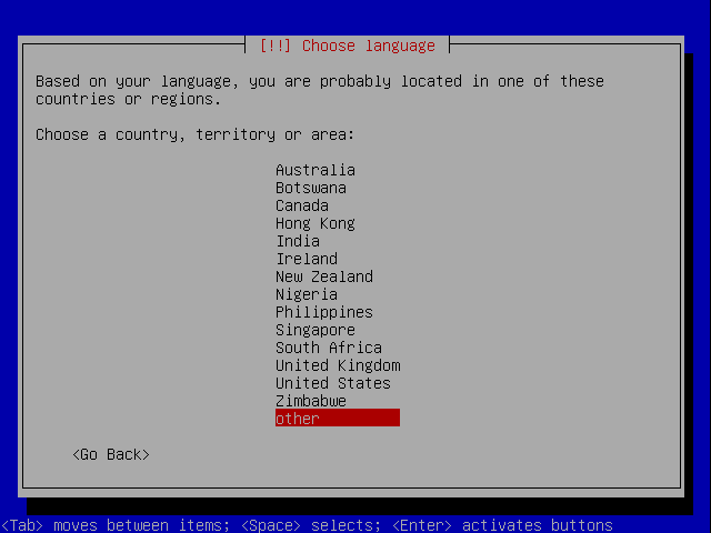 Choose a keyboard layout (you will be asked to press a few keys, and the installer will try to detect your keyboard layout based on the keys you pressed):