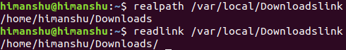 realpath /var/local/Downloadslink --relative-to=/home/himanshu