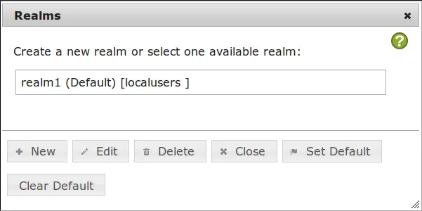 Now you will see that the new realm appears in the realm list. The realm "realm1" is the default realm and the realm "realm1" contains the resolver "localusers".