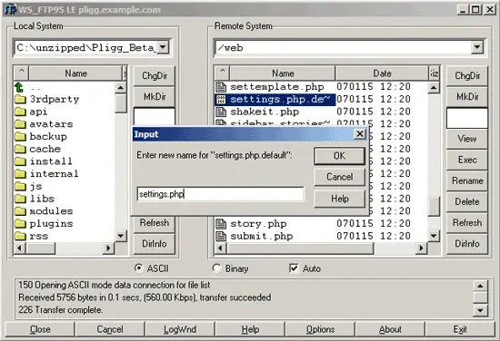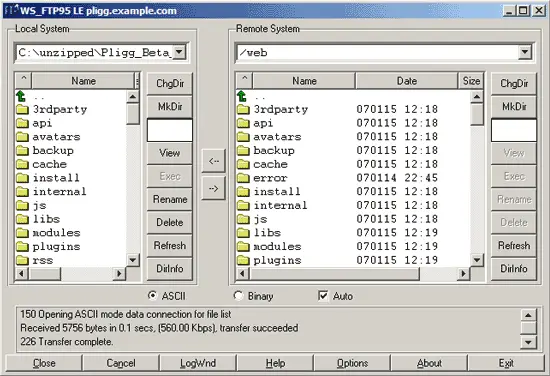 Then upload the contents of the Pligg_Beta_9.0 directory (not the directory itself) to your document root. This can take a few minutes: