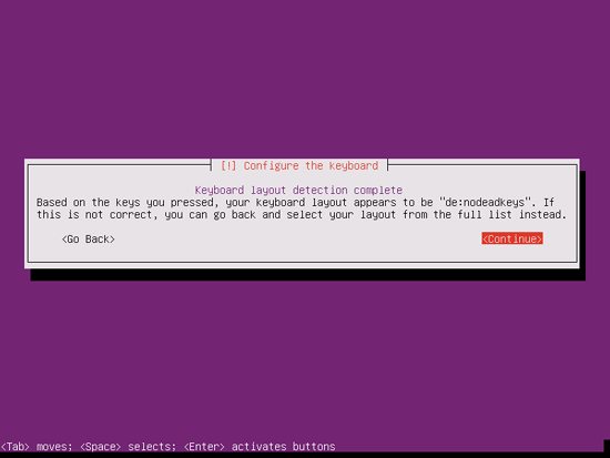 Choose a keyboard layout (you will be asked to press a few keys, and the installer will try to detect your keyboard layout based on the keys you pressed):