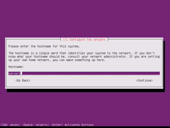 Enter the hostname. In this example, my system is called server1.example.com, so I enter server1: