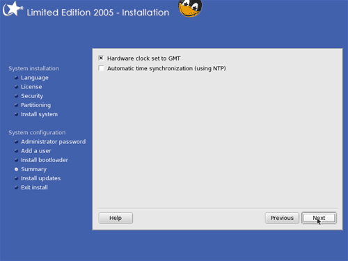 Now the installer presents us a summary of the installation and gives us the possibility to change settings by clicking on the appropriate Configure button. First of all we adjust our keyboard layout (if you don't have a US keyboard...):