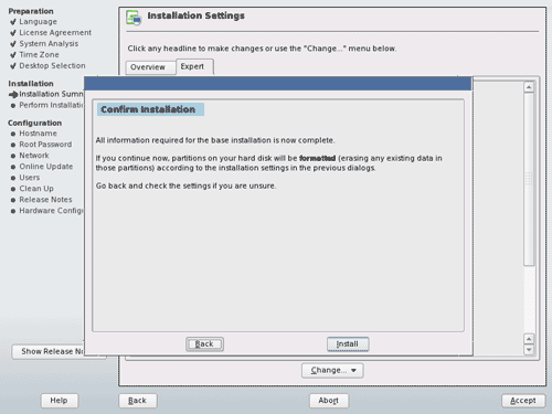 Back on the Installation Settings screen, click on Accept and then on Install: