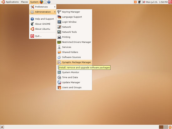 Open the Synaptic Package Manager (System > Administration > Synaptic Package Manager):