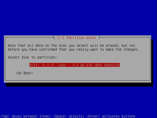 Next you'll partition the disk. This will erase all data on the disk! Please be carrefull when performing this step!