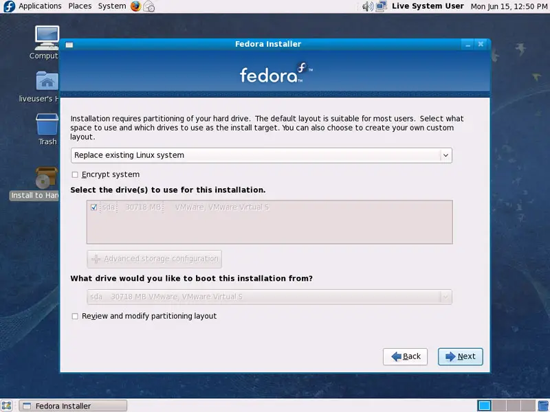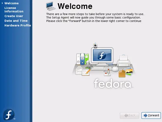 The Fedora Installer starts. Click on Next: