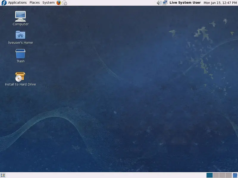 This is how the live desktop looks. You can now play around with it if you like. If you are sure that you want to install Fedora 11 on your hard drive, click on Install to Hard Drive: