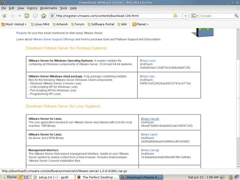 Then download the VMware Server for Linux .tar.gz file (not the rpm file!) to your desktop (e.g. to /home/falko/Desktop):