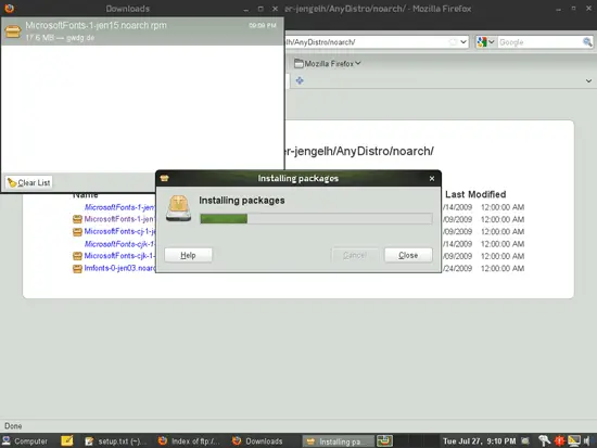 Afterwards, you can open a word processor like OpenOffice, and you should find a lot of new fonts there (like Arial, Verdana, etc.).
