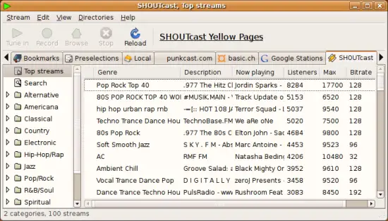 Streamtuner is a stream directory browser. With Streamtuner you can listen to SHOUTcast streams etc.
