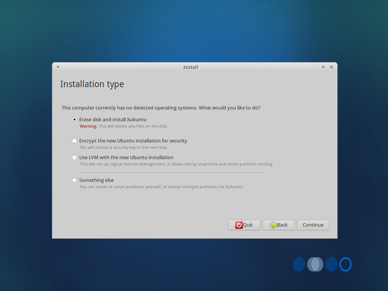 The installation of the base system is easy as 1-2-3 because the Xubuntu installer doesn't offer a lot of options to choose from, so you cannot go wrong.