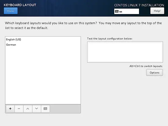 By default, CentOS comes with English language preinstalled, but we can add more languages easily. In my case, I am adding Deutsch German with Deutsch (Deutschland) as the additional language. Press Done after selection