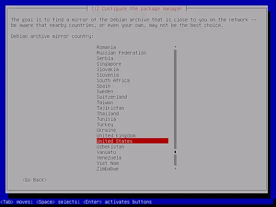 Then select the mirror you wish to use (e.g. ftp.us.debian.org):