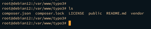 Next, go to the /var/www/typo3 directory and download the TYPO3 CMS source via the composer command below. In this example, you will be downloading the TYPO3 CMS 12.