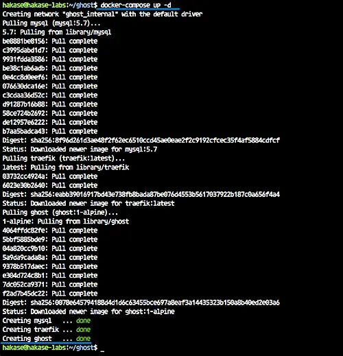 - And the ghost will be started when the traefik and MySQL container is up and running.