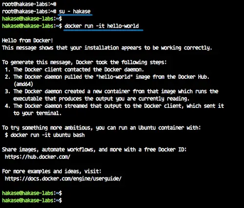The 'hakase' can now run the docker container and run the sudo command for root privileges.