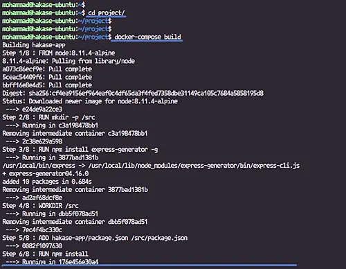 Next, we will build our custom docker image for the 'hakase-app' nodejs application.