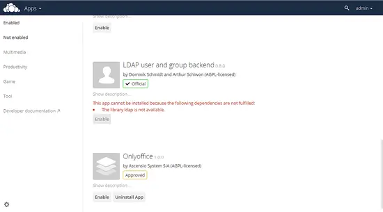 2. Enabling OwnCloud ONLYOFFICE integration app