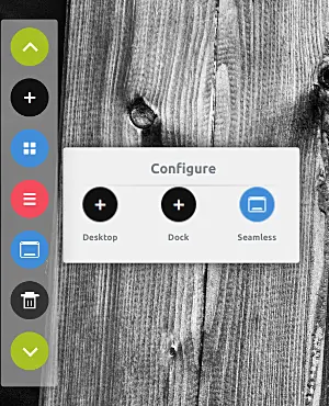 Anyway, the third icon in the 'Configure' menu says 'Seamless'. Try clicking on this option and you'll see that the blue background on your desktop disappears and your original desktop background comes back. Any widgets on your PlexyDesk desktop remain visible and accessible.
