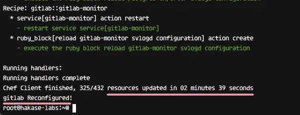 Now we need to run the command below as root to apply the new gitlab configuration.