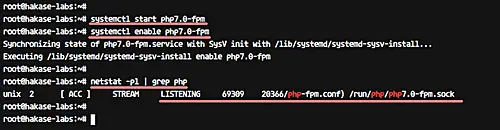 PHP-FPM is now running under the 'php7.0-fpm.sock' file - check it using the netstat command in the following way.