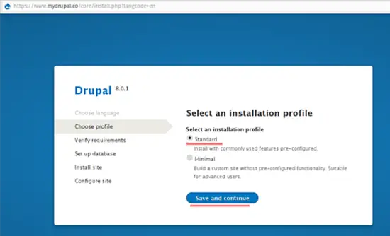 Select 'Standard' installation profile.