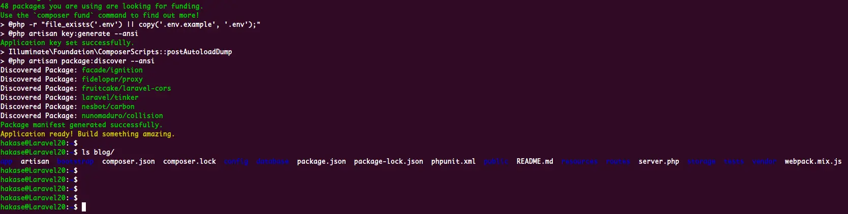 This section will install the Laravel web framework with the non-root user named 'hakase'.