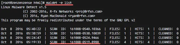 SCANID = 161008-0524.9466 is found in the Maldet output.