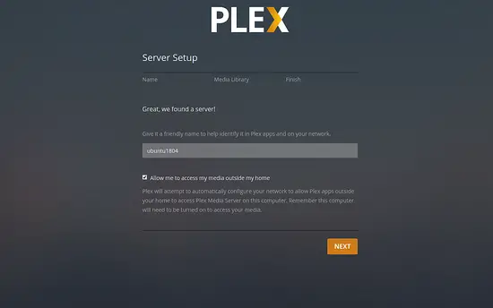 Plex media server is now installed and listening on port 32400. Now, open your web browser and type the URL http://your-server-ip:32400/web. You will be redirected to the following page: