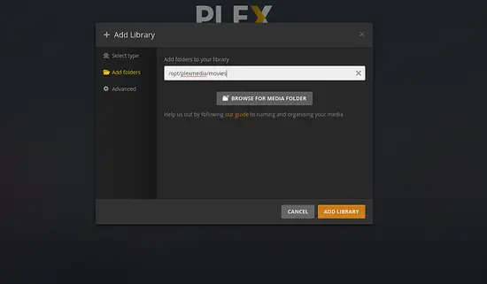 Next, you will need to create a directory structure for Plex. You can do this with the following command: