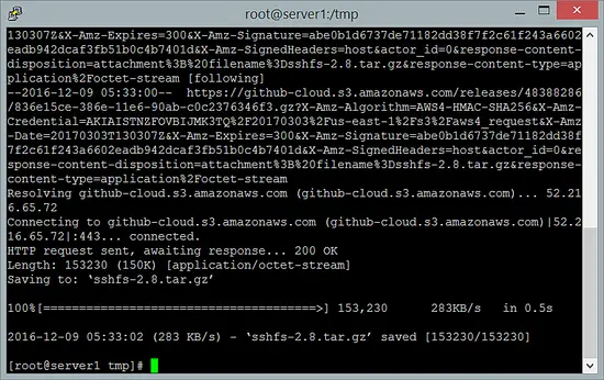 As an alternative (or when you want to get the latest SSHFS version) you can install SSHFS from source. To install SSHFS from source, you have to download the source files by using the following command which we will download from its official website: