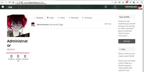 Open your web browser and visit the Taiga.io domain name. Mine is: http://taiga.hakase-labs.co