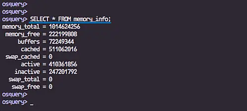 Osquery exposes the operating system as a relational database system. All info about the system is stored in the osquery tables and we can explore the whole system info by querying all available tables.