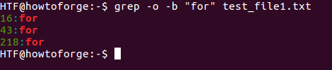 The grep command also allows you to display the byte-offset of the line in which the matched string occurs. This feature can be accessed using the -b command line option. But for the better usage of this option, you can use it with the -o command line option, which will display the exact position of the matched string.