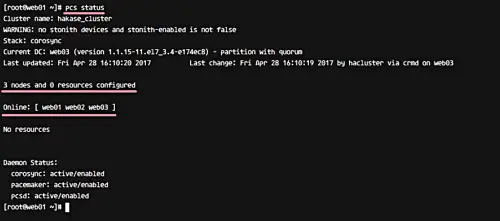 pcs cluster setup --name hakase_cluster web01 web02 web03