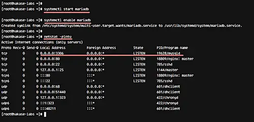 Start MariaDB service and enable it to start automatically at the boot time.