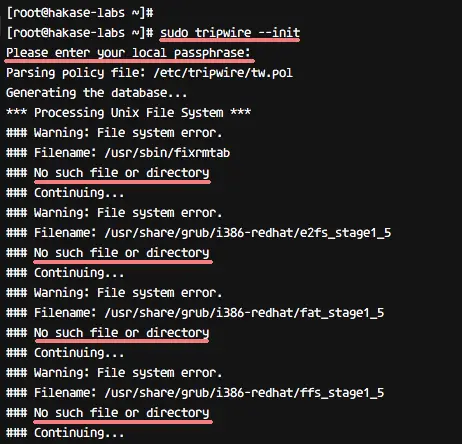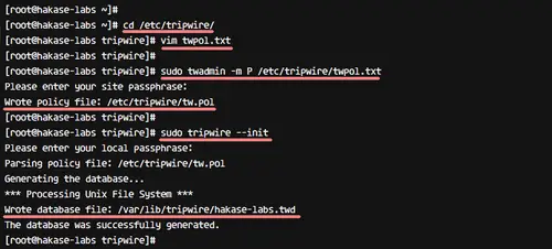 After the tripwire installation we discussed in the first step, we need to initialize the tripwire database and make sure there is no error.