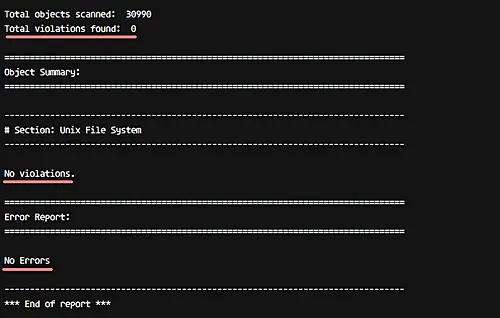 And you will get the result saying system violation in '/var/www/' directory with security level High 100.