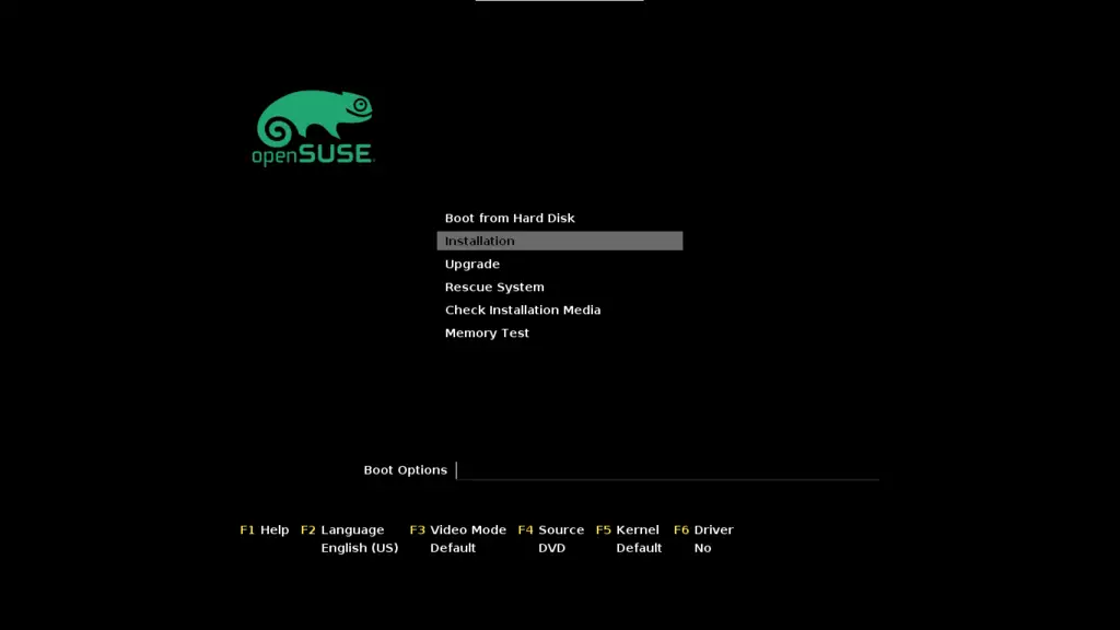 Download the OpenSUSE 13.2 GNOME Live-CD iso image, burn it onto a CD, and boot your computer from it. Select Installation.