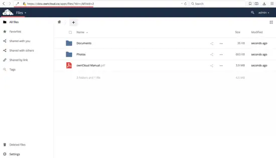 Now open your web browser and type in the ownCloud domain name into the URL field, mine is: data.owncloud.co, and you will be redirected to the secure HTTPS connection.