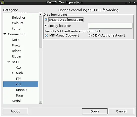 - Once X11 is selected, check the option that says "Enable X11 forwarding" on the right side.