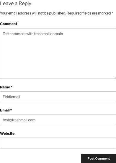 Enter some comment text, a name and a test email address, e. g. [email protected] and submit the comment. You should see a message like this: