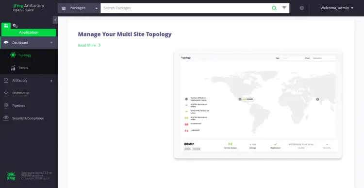 Now, click on the Finish button. You should see the Artifactory dashboard in the following screen:
