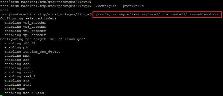 The libvpx and libopus (video/audio) codecs are required for the Toxcore installation, therefore we run the export command in the terminal to set the PKG_CONFIG_PATH variable.