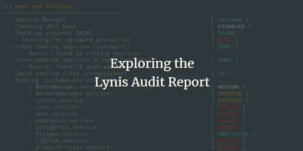 Author: Ali Imran Nagori • Tags: linux, security • Comments: 0Lynis is a free and open-source security auditing tool and released as a GPL licensed project and is available for Linux and Unix-based Operating systems. In this tutorial, we will try to explore the Lynis audit report and learn to apply some of the reforms it suggests. Let's now get started with this guide.